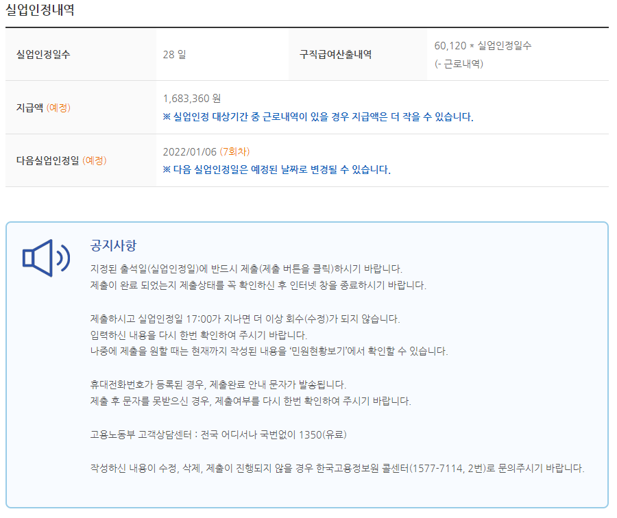 오늘은 고용보험 실업급여 6차 실업인정일이라 또 오랜만에 고용보험 홈페이지를 들어가서 신청하였습니다.