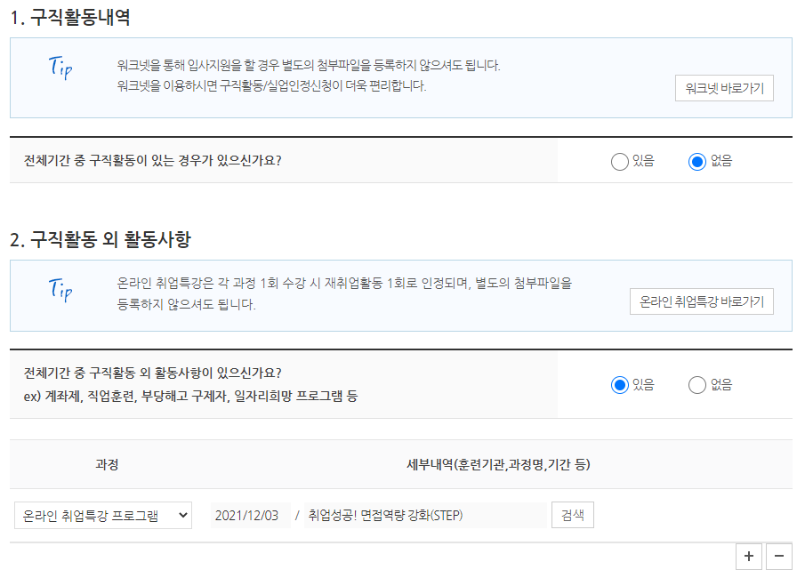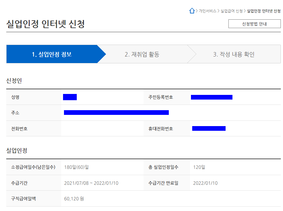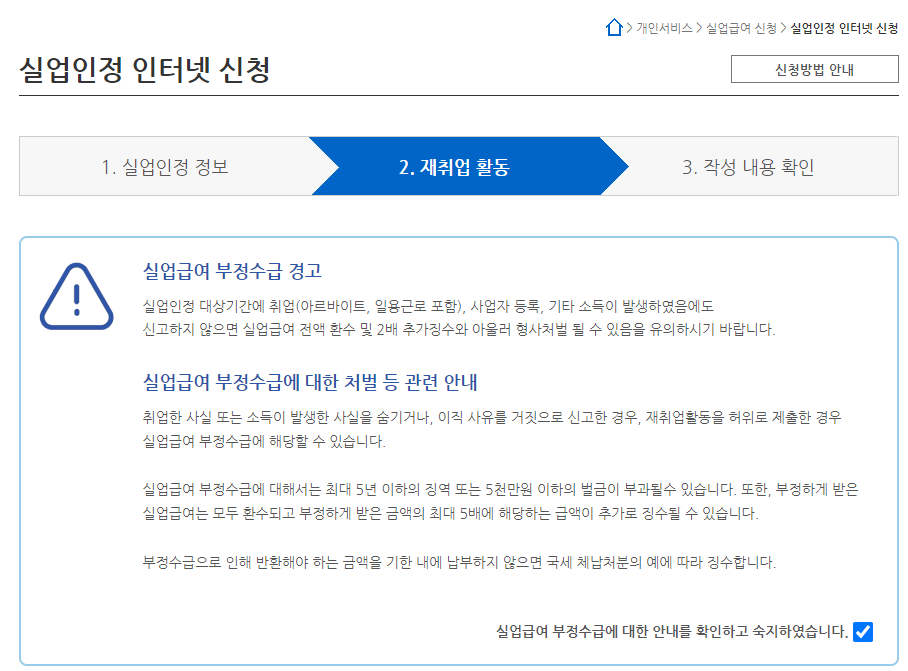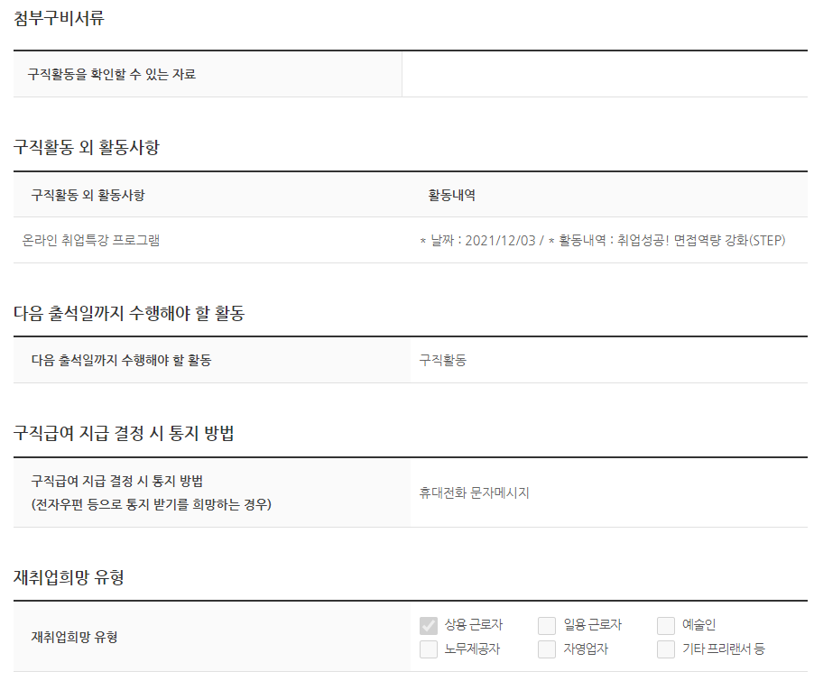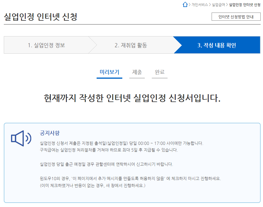 3. 실업인정 인터넷 신청 작성내용 확인하기