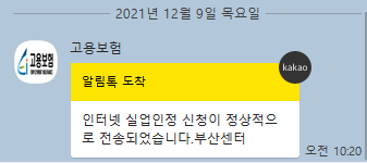 그리고 카톡으로도 고용보험에서 하나 날려주기 때문에 2번 확인하실 수 있습니다.