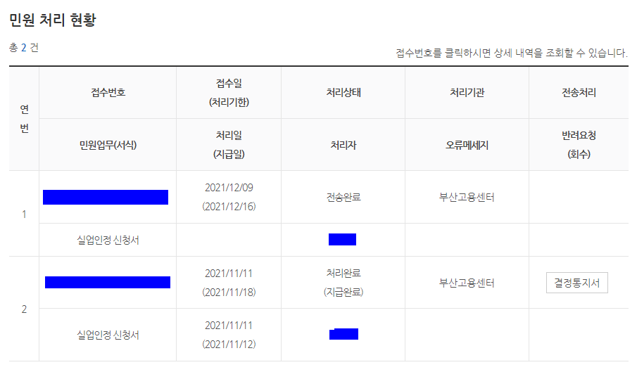 민원처리현황에 보시면 접수가 제대로 된 것을 확인하실 수 있습니다.