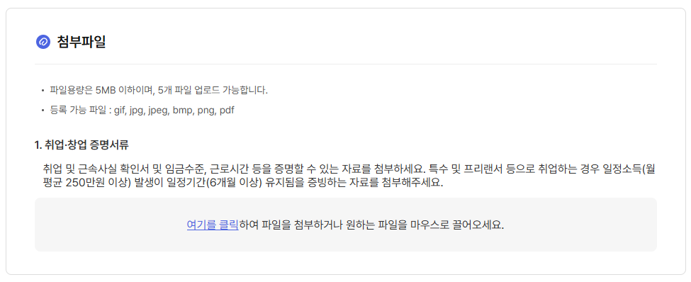 하단의 첨부파일에는 재직증명서랑 근로계약서를 첨부해주시면 됩니다!