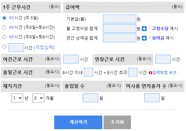 아래 노동OK에서 가져온 계산기 이미지인데, 직접 계산해서 정확하게 알아보 보실 분들은 계산해보시면 좋겠습니다!