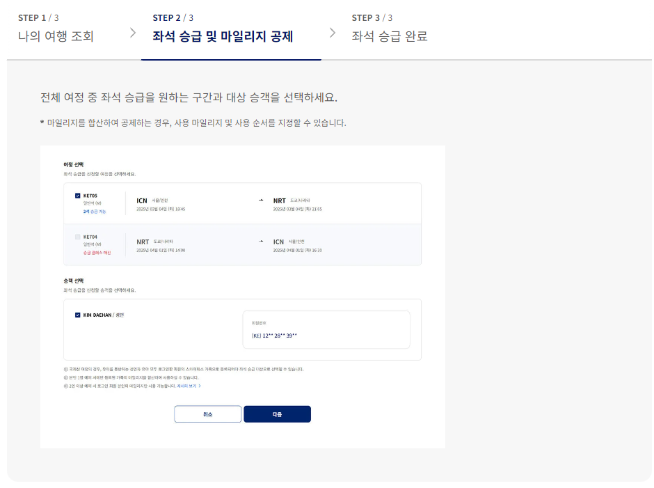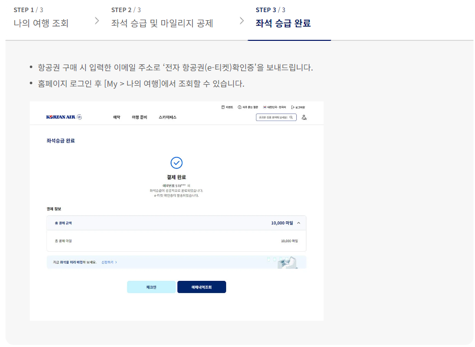 항공권 구매와 동시에 승급하는 것이 일반적이죠? 아래의 6단계를 거치면서 가능합니다.