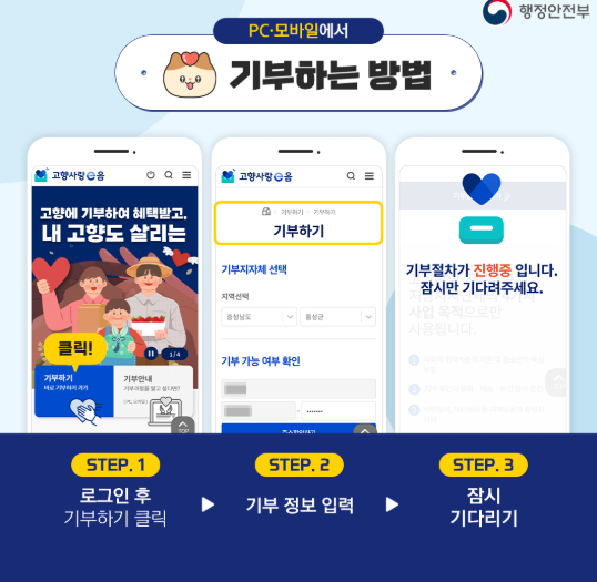 지역을 응원하는 가장 확실한 방법, 고향사랑기부제 정부/자치단체 공식 포털