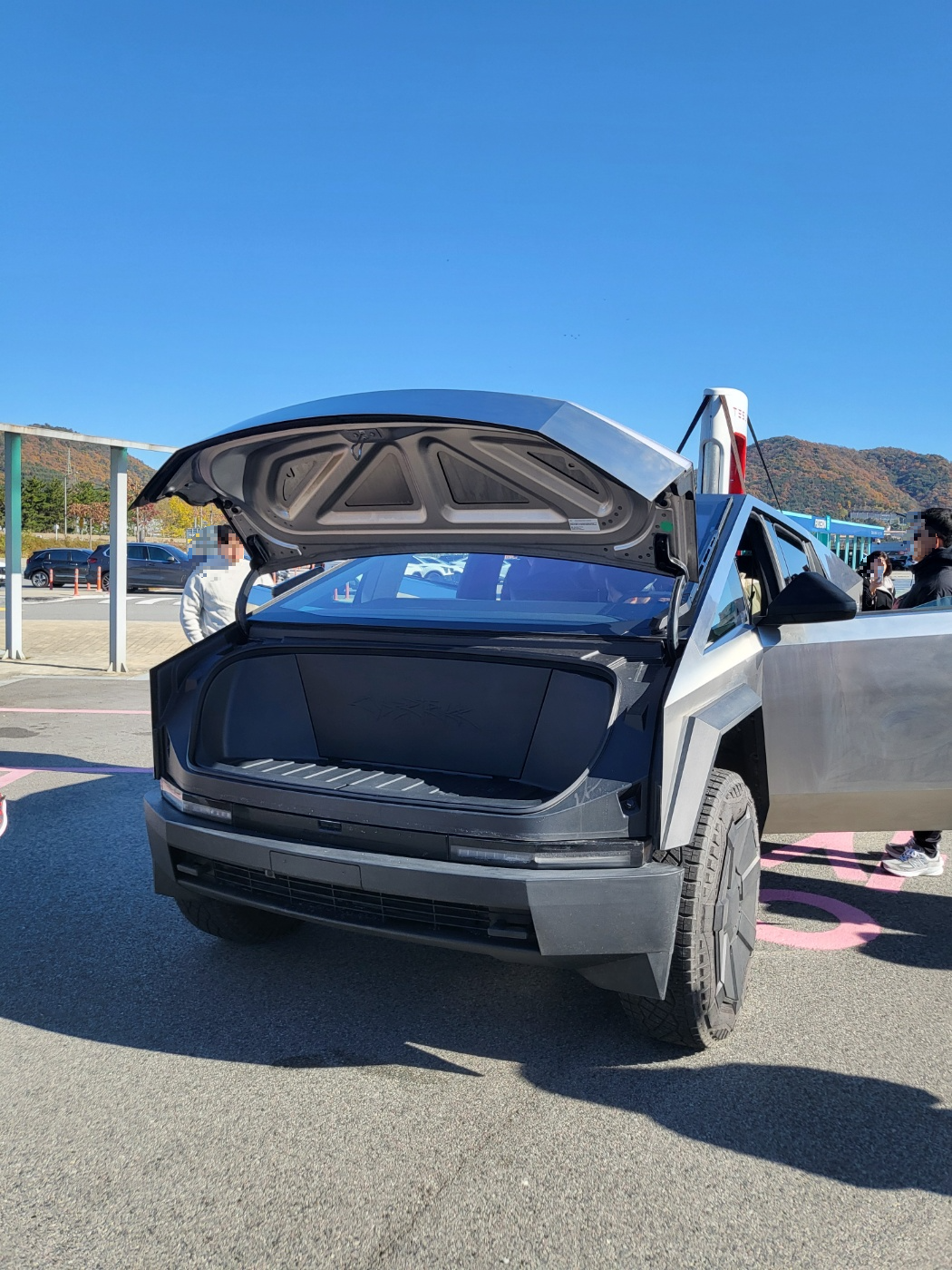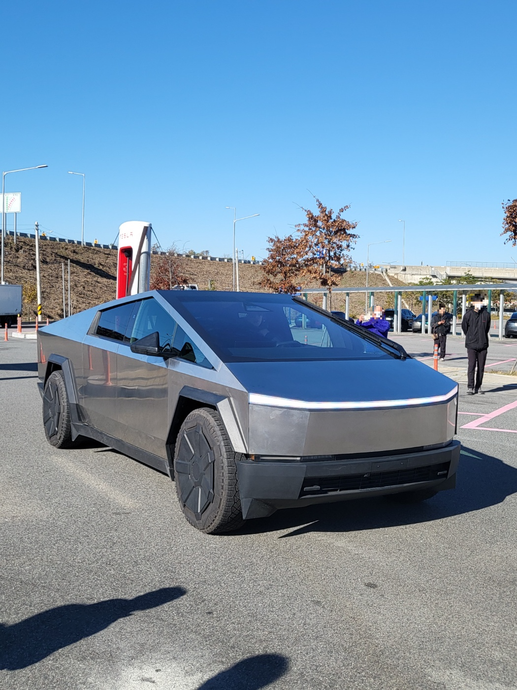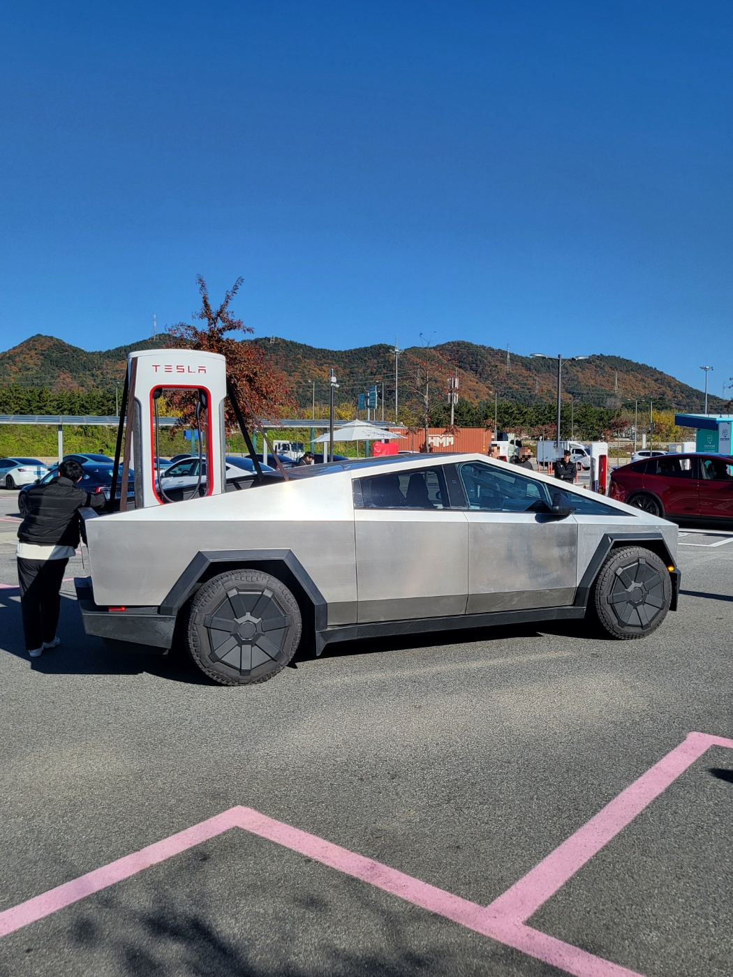 마지막 종착지인 김해 진영휴게소(부산방향)이 집에서 가까워서 다녀왔는데요. 테슬라 사이브 트럭 실물을 보았습니다!!!!