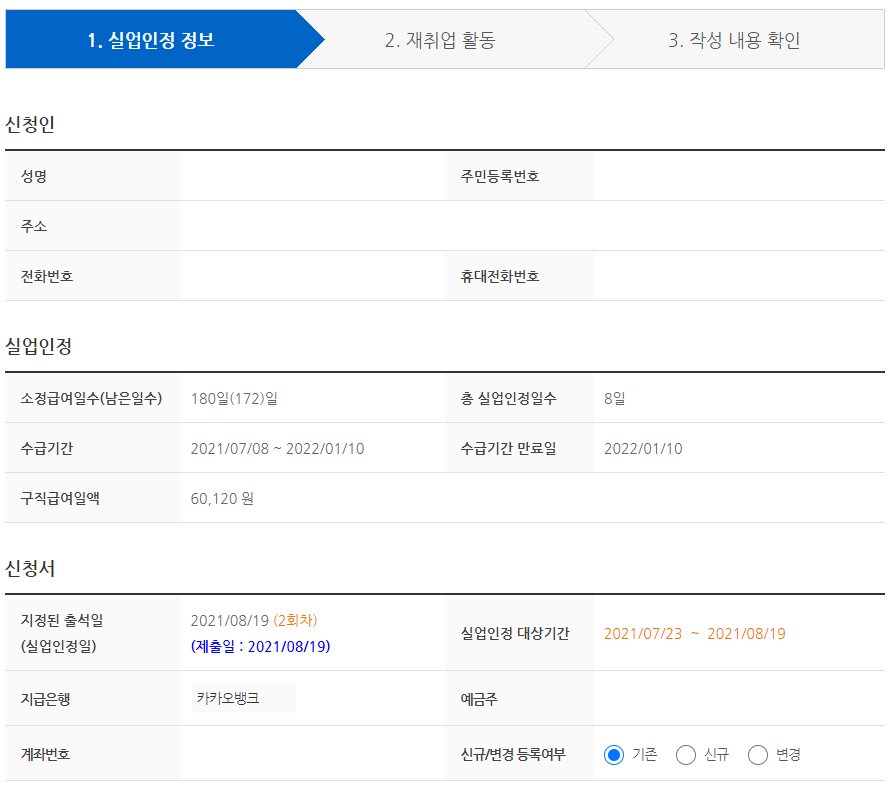 실업인정 정보를 확인합니다.