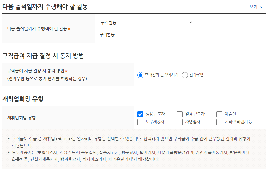 다음버튼을 누르면 재취업활동 으로 넘어갑니다.