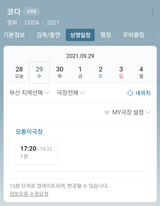 부산에서 코다 상영관을 찾다보니 모퉁이극장 이란곳만 남았더라구요(9월 29일 기준)