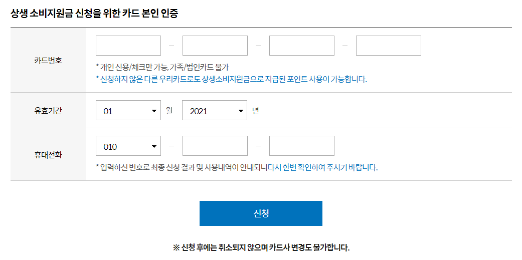 우리카드 상생소비지원금 신청 준비물 : 휴대폰, 우리카드