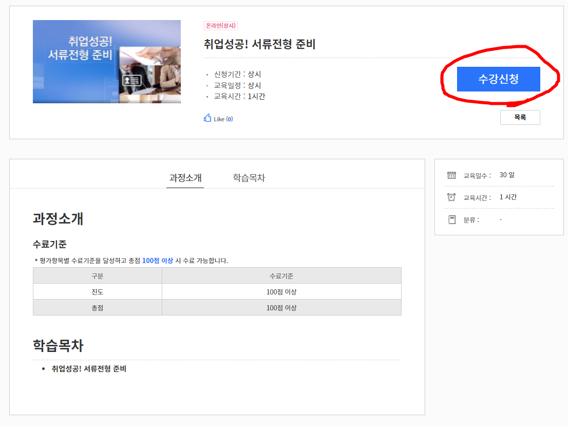 온라인 취업특강에 올라와있는 각 과정을 1회 수료하시면, 1회 실업인정이 가능합니다.