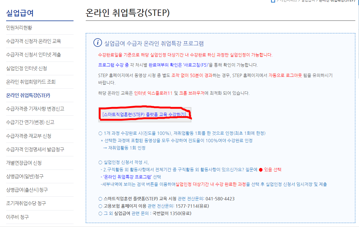 실업급여 온라인 취업특강은 STEP이라고 그냥 쉽게 말해 동영상 강의입니다.