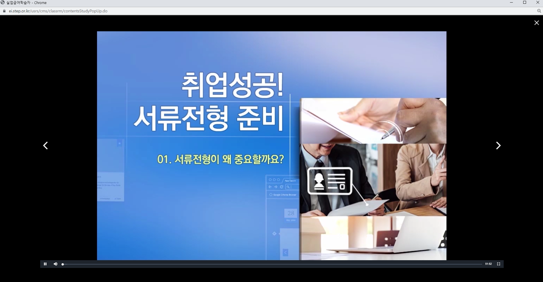 고용보험에서 만든 취업에 관한 동영상을 집에서 컴퓨터로 약 1시간 정도 보는 것입니다.