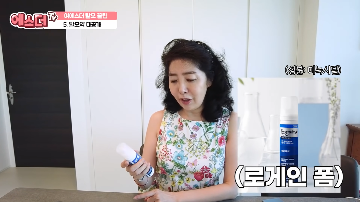 그래서 일단 여에스더 탈모약은 로게인폼 바르는 미녹시딜을 쓰고 있다고 말해주셨어요